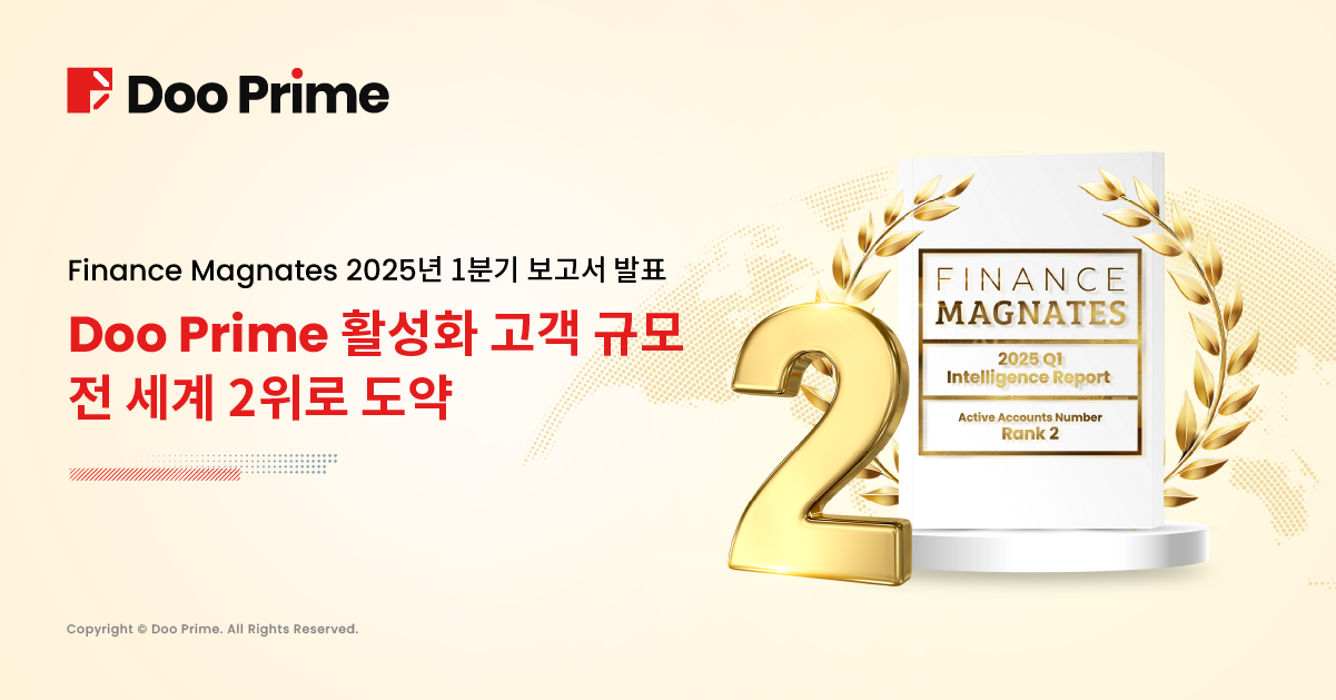 Finance Magnates 보고서에 따르면 Doo Prime은 2025년 1분기에 활성 고객 수 167,000명을 기록하며 글로벌 2위에 올랐습니다. 이는 2024년 2분기의 143,000명 대비 약 17% 증가한 수치로 플랫폼의 강력한 시장 경쟁력을 입증하는 결과입니다.