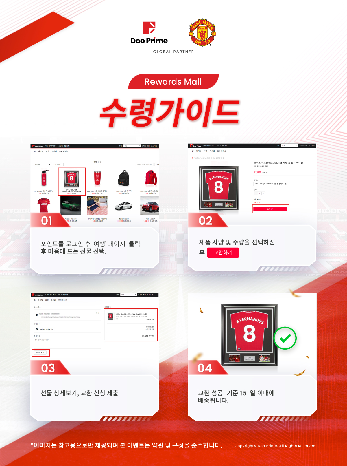 맨체스터 유나이티드의 주장 브루노 페르난데스, 루크 쇼, 리산드로 마르티네스 등 인기 스타들의 친필 싸인 유니폼은 이날부터 Doo Prime 포인트몰에서 마음대로 구입할 수 있습니다!
