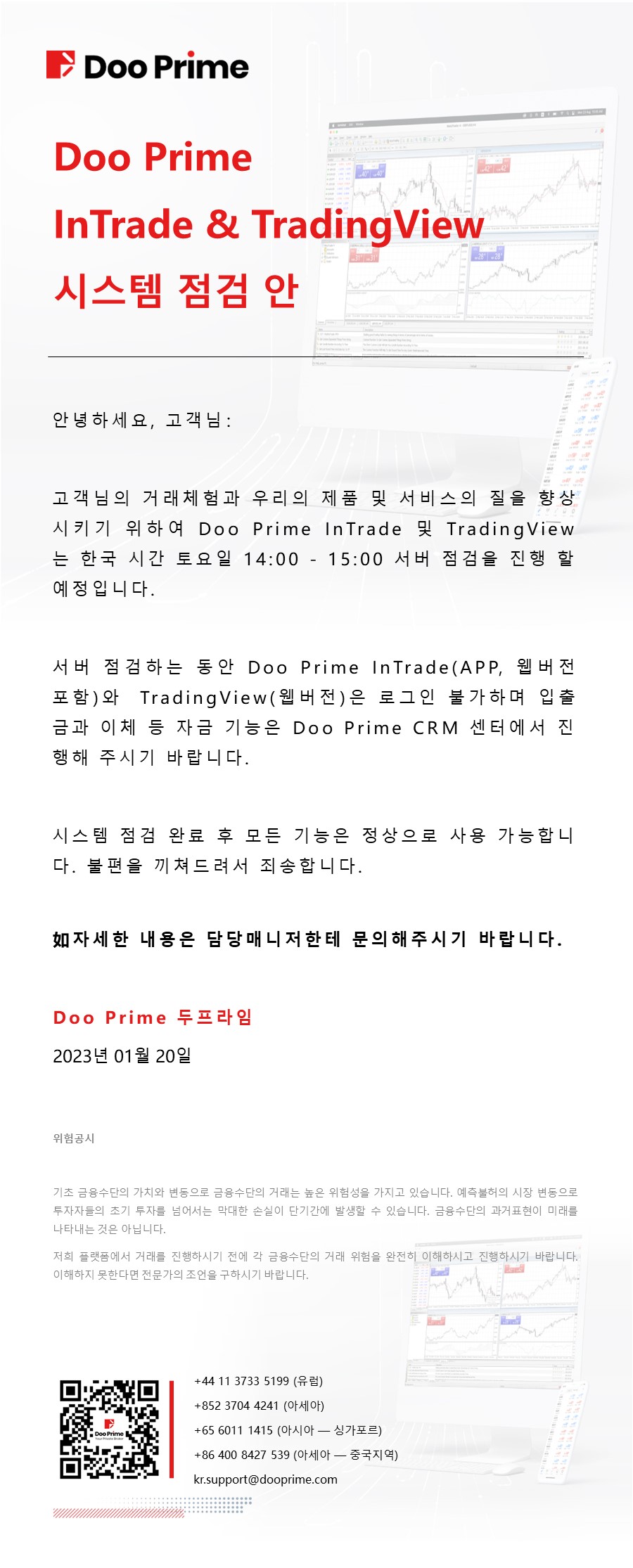 Doo Prime CRM센터 시스템 고장 성명