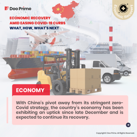 On 7th December 2022, China, the world’s second-largest economy abandoned key parts of the zero-Covid strategy imposed three years ago. Under the zero-Covid policy, China’s economy has withstood several challenges since the epidemic began. However, with China’s pivot away from its stringent zero-Covid strategy, the country’s economy has been exhibiting an uptick since late December and is expected to continue its recovery.