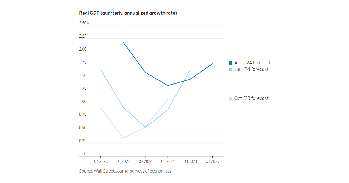 The latest Wall Street Journal survey paints a notably optimistic picture of the U.S. economy, with economists revising their growth forecasts upward. The likelihood of a recession in the coming year has dwindled, now standing at 29%, a significant drop from 39% in January.