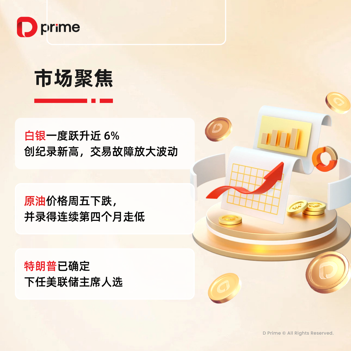 精选研报 | 上周五,白银一度跃升近 6% 创纪录新高。本周,美国将公布 9 月零售销售数据和生产者物价指数。另外,随着美联储官员再度放鸽,目前市场预期美联储 12 月降息的机率为 80.9%。还有哪些大事值得关注?下方图片速览: