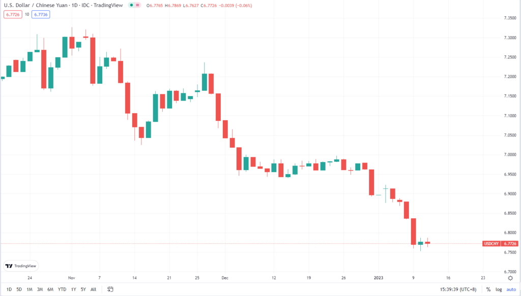 尽管美元对人民币汇率在去年一度处于“破7”的状态下,但就在 2023 年的第 5 个交易日,在岸、离岸人民币汇率便已双双突破 6.8 的重要关口。