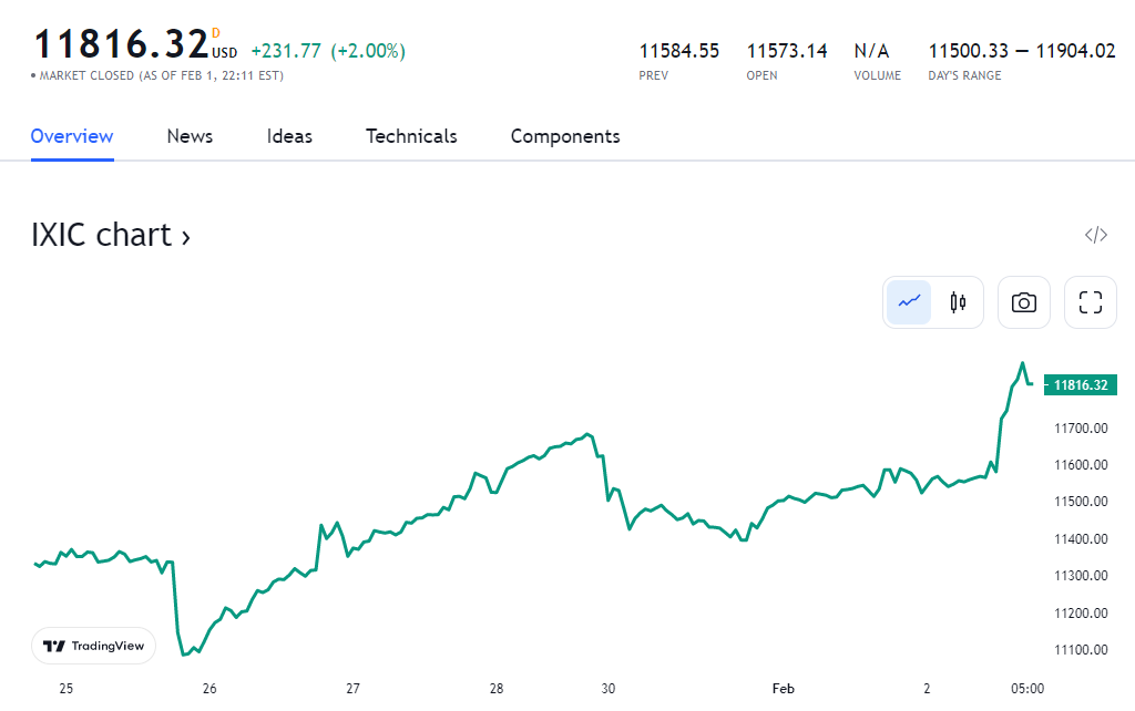 美股低开低走,尾盘时美股集体转涨至日高,道指最高涨近 250 点或 0.7%,标普 500 指数最高涨 1.8% 并升破 4100 点,纳指最高涨 2.8%。截至收盘,美股均连涨两日。标普 500 指数收涨 42.61 点或 1.05%,报 4119.21 点,创去年 8 月 25 日以来的逾五个月新高;道指收涨 6.92 点,涨幅 0.02%,报 34092.96 点,创两周半高位;纳指收涨 231.77 点,涨 2%,报 11816.32 点,创去年 9 月 12 日以来的四个半月最高。
