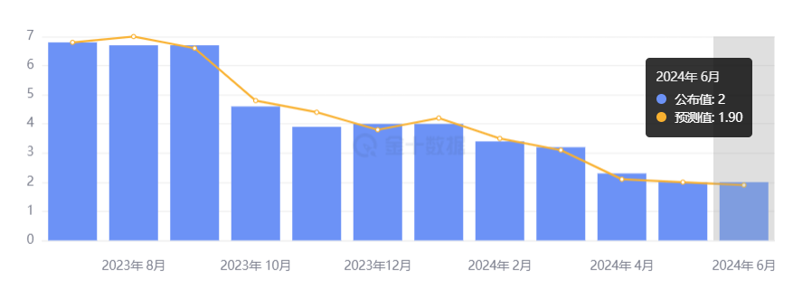 英国 6 月 CPI 同比上涨 2%,幅度与前一个月持平,高于于市场预期下降至 1.9%,其中服务业通胀率为 5.7%,与 5 月持平,高于预期的 5.6%。