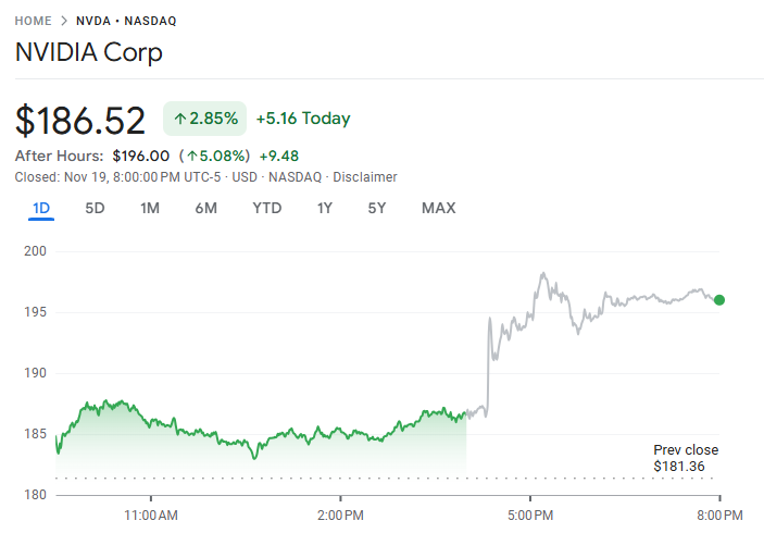展望未来,英伟达预计第四季度营收将达到 650 亿美元,高于市场普遍预期的 620 亿美元,并预期毛利率将回升至 75%。乐观指引带动股价在盘后交易中上涨约 3.5%,显示投资人对公司在 AI 晶片市场持续领跑的信心不减。