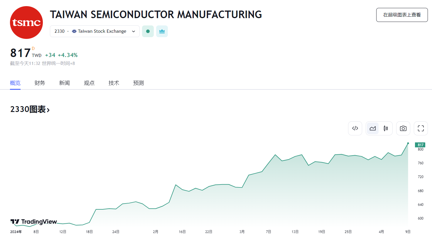 台积电涨超 3% 创历史新高