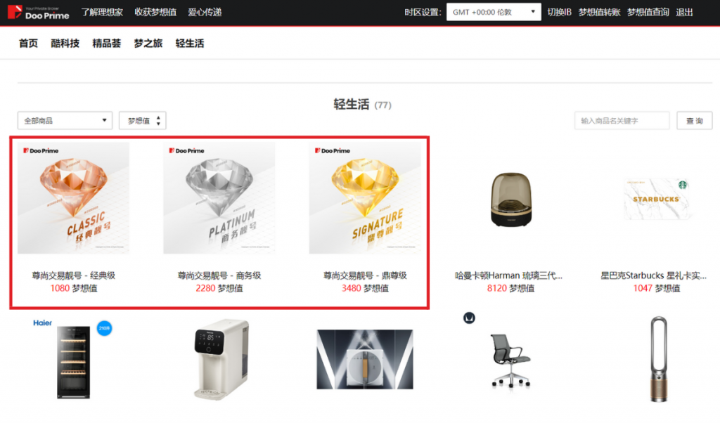 即日起,Doo Prime 客户只要 1,080 梦想值就可兑换并开通尊尚交易靓号。靓号先到先得,兑换次数不设上限,诚邀广大客户一同开展个性化的升级交易体验!