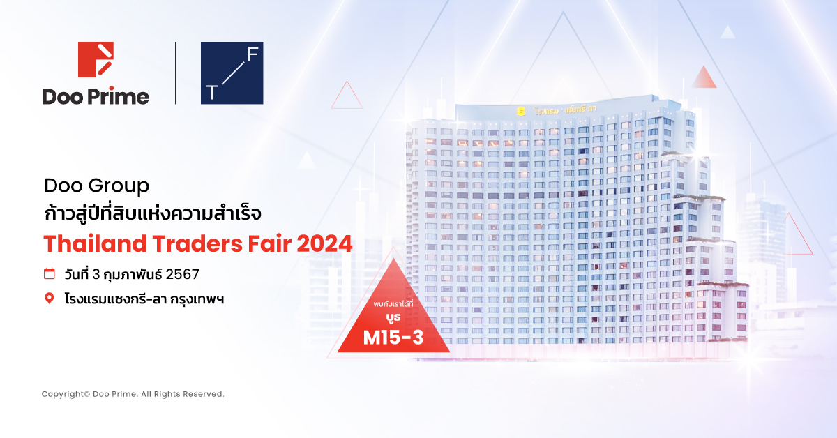 ขอเชิญท่านเข้าร่วมงาน Traders Fair Thailand ประจำปี 2567 ร่วมค้นพบผลิตภัณฑ์ทางการเงินและบริการที่ยอดเยี่ยมของ Doo Prime ไปพร้อมกัน