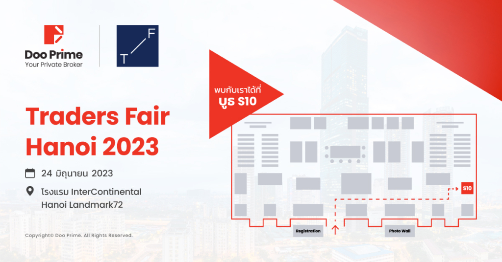 และจุดหมายต่อไปของเรา คือ งาน Traders Fair Vietnam Hanoi ที่จะจัดขึ้นในวันที่ 24 มิถุนายน 2023 ที่ โรงแรม InterContinental Hanoi Landmark72 และ Doo Prime จะประจำอยู่ที่บูธ S10 ซึ่งงาน Traders Fair นี้เป็นงานการเงินระหว่างประเทศอันทรงเกียรติที่รวบรวมนักลงทุนและผู้เชี่ยวชาญในแวดวงการเงินทั้งหมดไว้ในที่เดียวกันเพื่อเชื่อมต่อ แบ่งปัน และสร้างโอกาสระหว่างกัน ช่วยกันผลักดันเทคโนโลยีทางการเงินไปสู่อีกระดับ