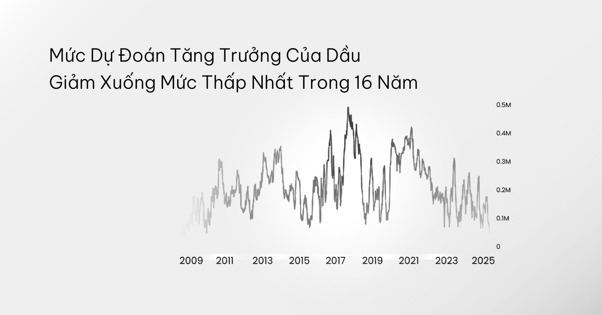 Số lượng các vị thế mua ròng đầu cơ vào dầu thô WTI đã giảm xuống mức thấp nhất kể từ năm 2009. Theo dữ liệu mới nhất từ CFTC, các lệnh đặt cược giá lên đã giảm mạnh, phản ánh sự hoài nghi sâu sắc về khả năng tăng giá ngắn hạn của dầu.