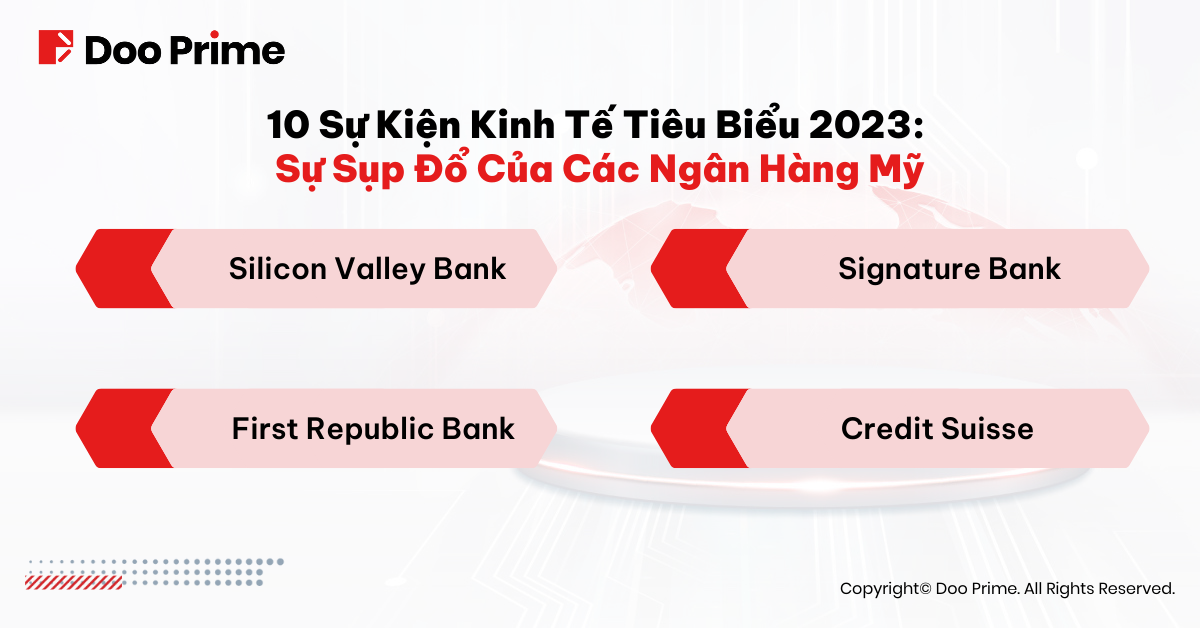 Vào ngày 10 tháng 3 năm nay, Bộ Bảo vệ và Đổi mới Tài chính California (DFPI) đã thông báo đóng cửa Silicon Valley Bank. Ngân hàng này sau đó được tiếp quản bởi được tiếp quản bởi Tổng công ty Bảo hiểm Tiền gửi Liên bang (FDIC). Vào ngày 12 cùng tháng, Signature Bank cũng đóng cửa bởi cơ quan quản lý bang New York. Sau đó, FDIC cũng tiếp quản và thành lập Signature Bridge Bank như một đơn vị chuyển giao. Trong khi đó, Credit Suisse xin dời báo cáo tài chính năm 2022 của họ, khiến cổ phiếu ngân hàng này giảm sâu do tâm lý hoảng loạn của nhà đầu tư. Tuy nhiên, sau sự can thiệp của chính phủ Thụy Sĩ, UBS đã mua lại Credit Suisse với giá 3 tỷ franc Thụy Sĩ, cứu công ty này khỏi sự sụp đổ khi đang chìm sâu vào khủng hoảng.